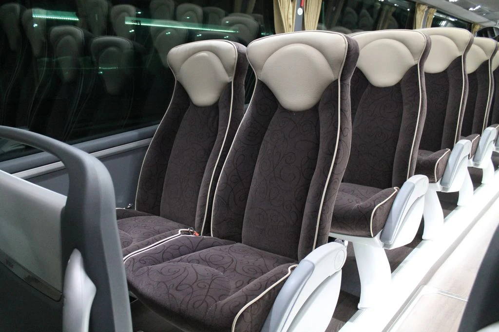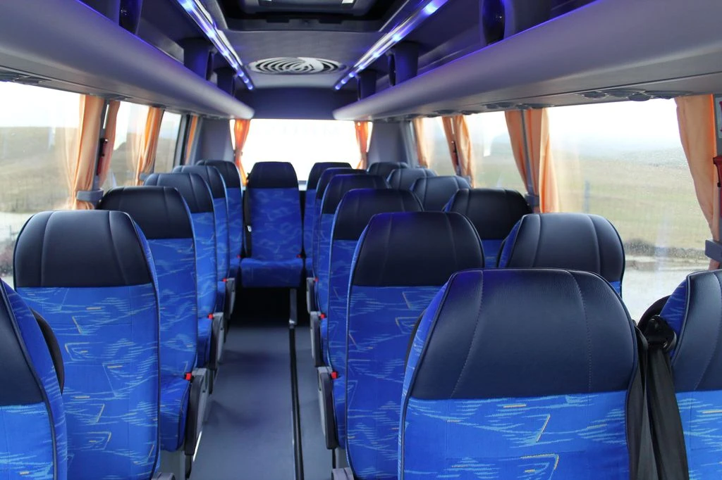 Tenemos una gama de microbuses de 16 y 34 plazas; hasta grandes autobuses de entre 54 y 75 plazas; con video, frigorífico y mesas.​